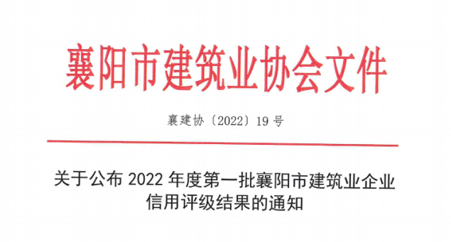 附件:襄建協〔2022〕19號關于公布2022年度第一批襄陽市建筑業企業信用評級結果的通知.pdf 【查看全文】