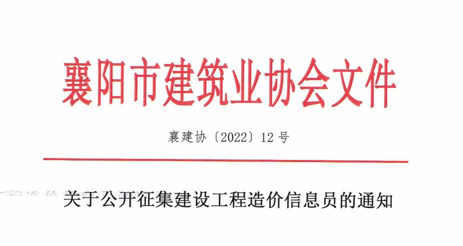 附件1:襄建協〔2022〕12號關于公開征集建設工程造價信息員的通知.pdf附件2:《襄陽市建設工程造價信息員申... 【查看全文】