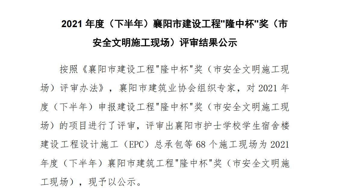 2021年度(下半年)襄陽市建設工程“隆中杯”獎(市安全文明施工現場)評審結果公示).pdf 【查看全文】