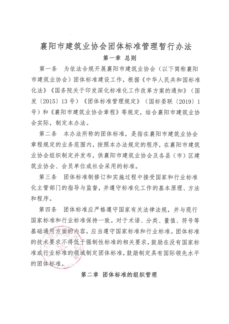 襄陽市建筑業(yè)協(xié)會關(guān)于印發(fā)《襄陽市建筑業(yè)協(xié) 會團體標準管理暫行辦法》的通知