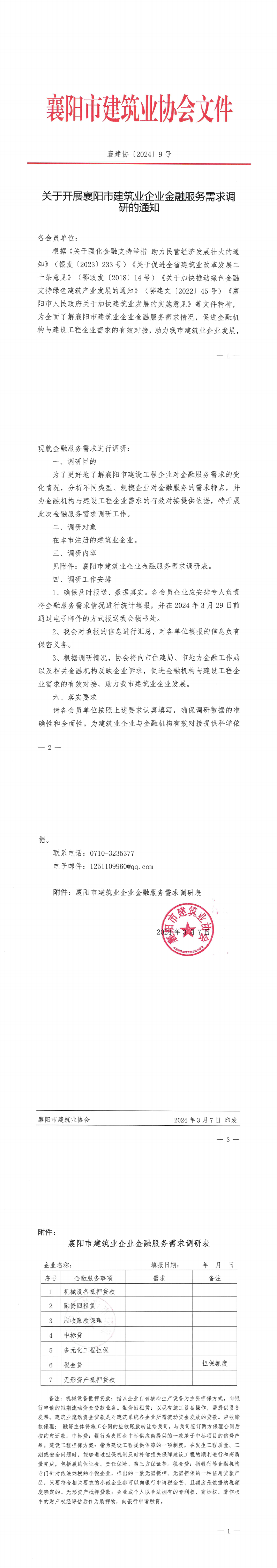 關于開展襄陽市建筑業企業金融服務需求調研的通知