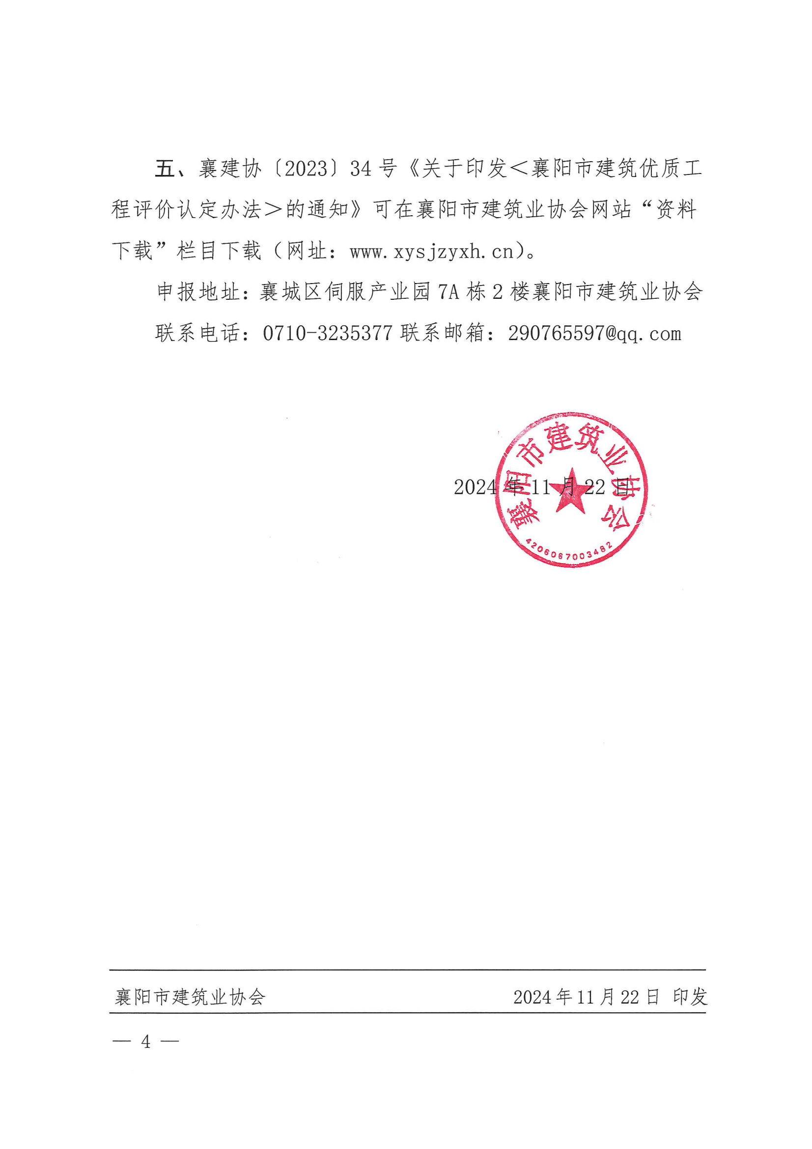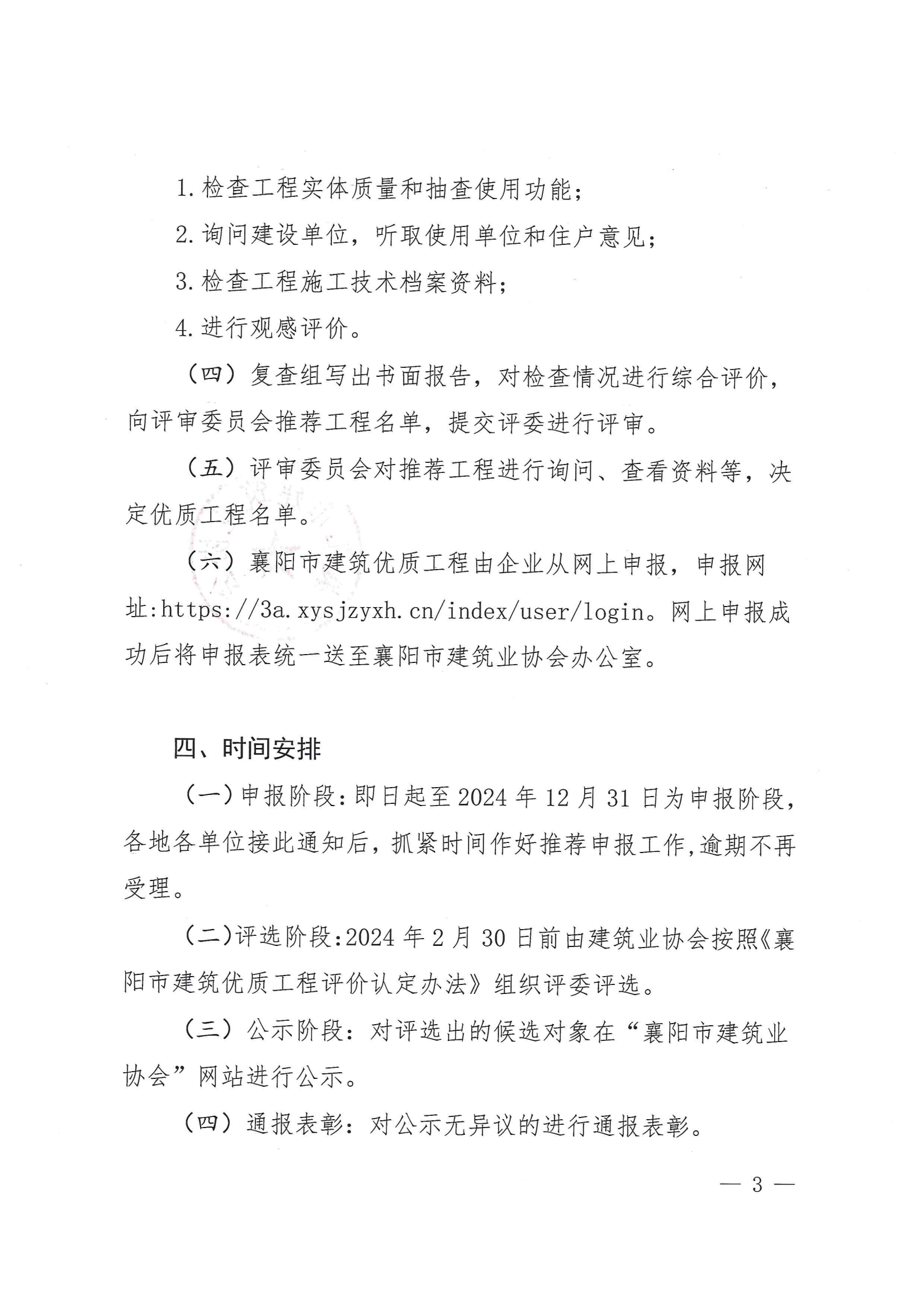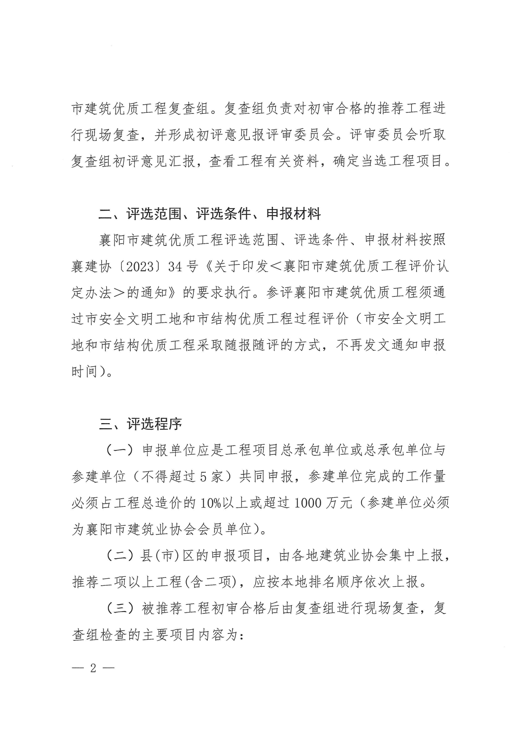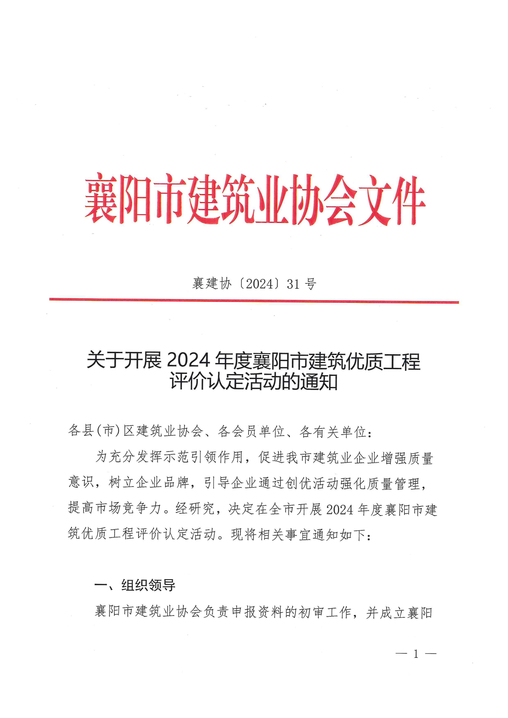 關(guān)于開展 2024 年度襄陽市建筑優(yōu)質(zhì)工程評(píng)價(jià)認(rèn)定活動(dòng)的通知
