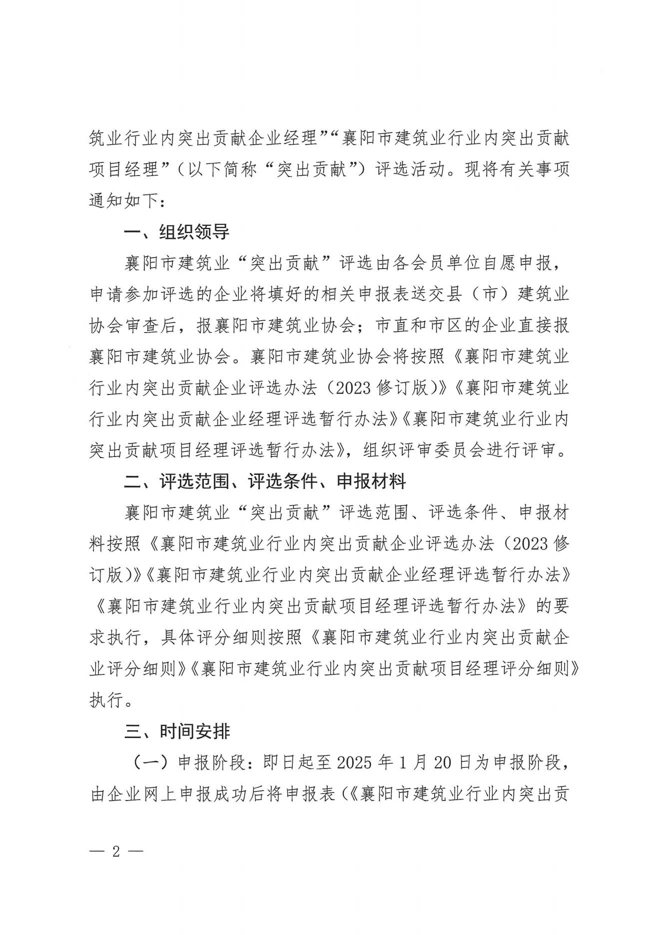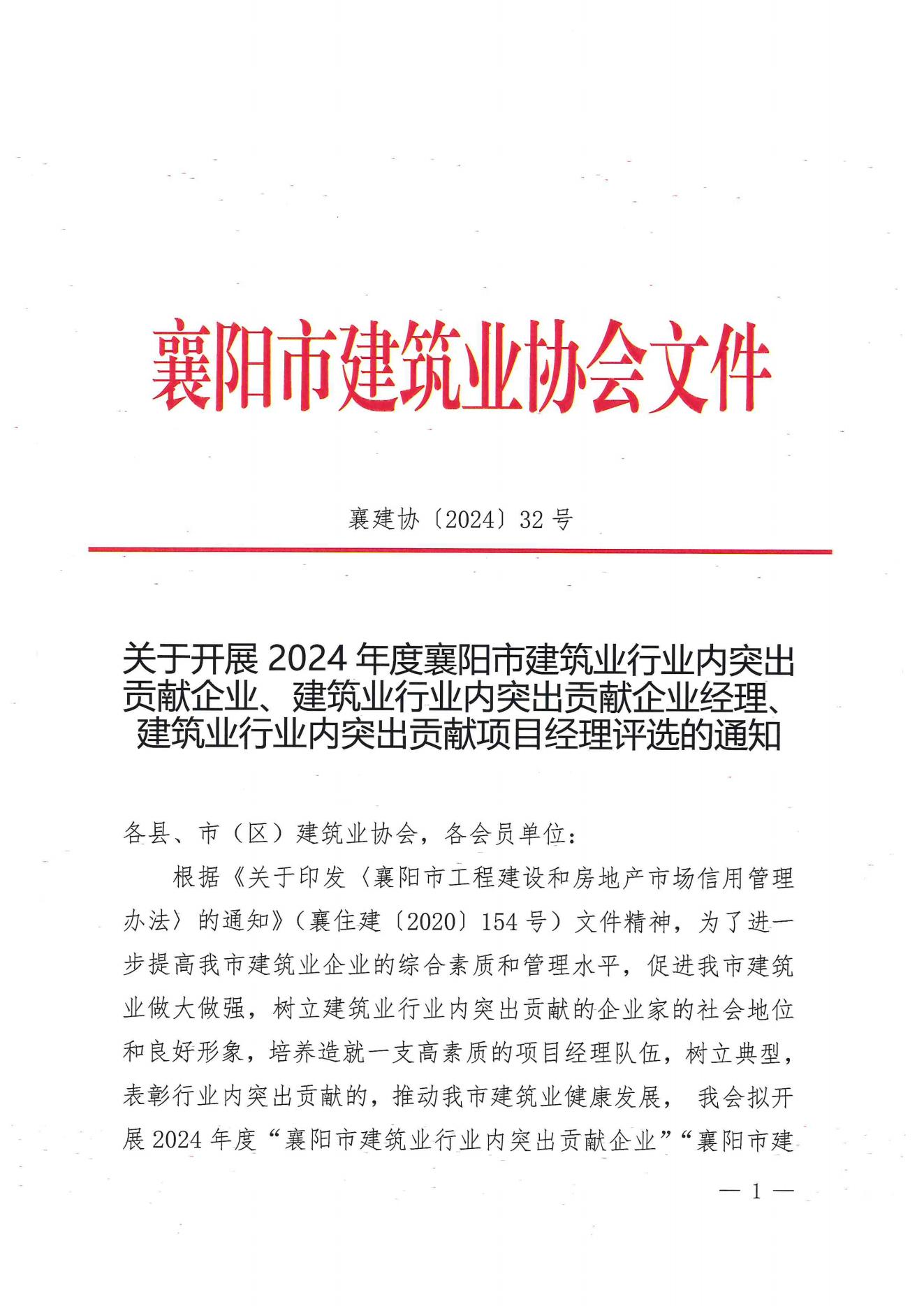 關于開展2024年度襄陽市建筑業行業內突出貢獻企業、建筑業行業內突出貢獻企業經理、建筑業行業內突出貢獻項目經理評選的通知
