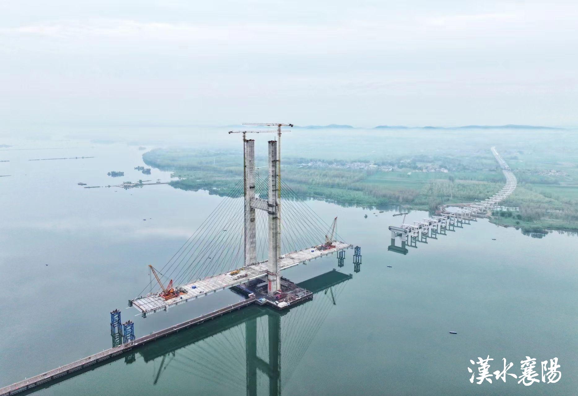 該橋是襄陽207國道改建項目全線重難點控制性工程,大橋全長4454米,主橋長660米,“H”型主塔高201米,有104根斜拉索,目前已經安裝過半,大橋建成后將是國內最大跨徑組合梁獨塔斜拉橋。
