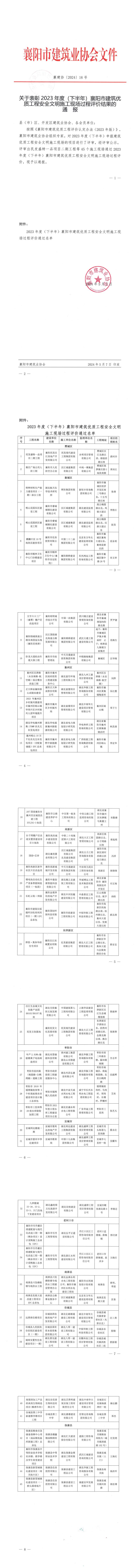襄建協〔2024〕16號 關于表彰2023年度(下半年)襄陽市建筑優質工程安全文明施工現場評審結果的通報