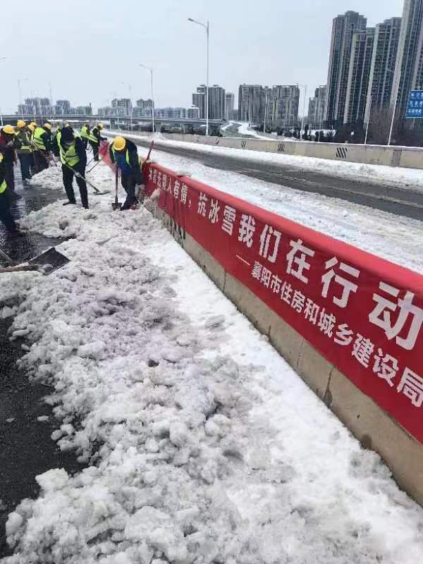 各建筑企業積極響應,襄陽市建筑業協會累計動員933人、50臺鏟車、13臺裝載機、20臺渣土車等除雪人員車輛設備,在相關部門的指導下,緊密協作,對城區主要道路、橋梁及人行道進行除雪作業。其中,襄陽市建筑業協會會長單位漢江城建集團有限公司投入人員254人、鏟車35輛、渣土車20臺、鐵鍬216把、皮卡11輛、工業鹽分別對一橋、二橋、三橋、五橋、長虹路、襄城區龐公及繞城南路路段、高新區米芾路和機場路、東津新區高鐵南路路段、南漳縣發展大道與丁蘭路口等主要干道進行除冰掃雪保障道路通行。經過共同努力,相關道路通行條件明顯改善,市民出行安全得到有效保障。